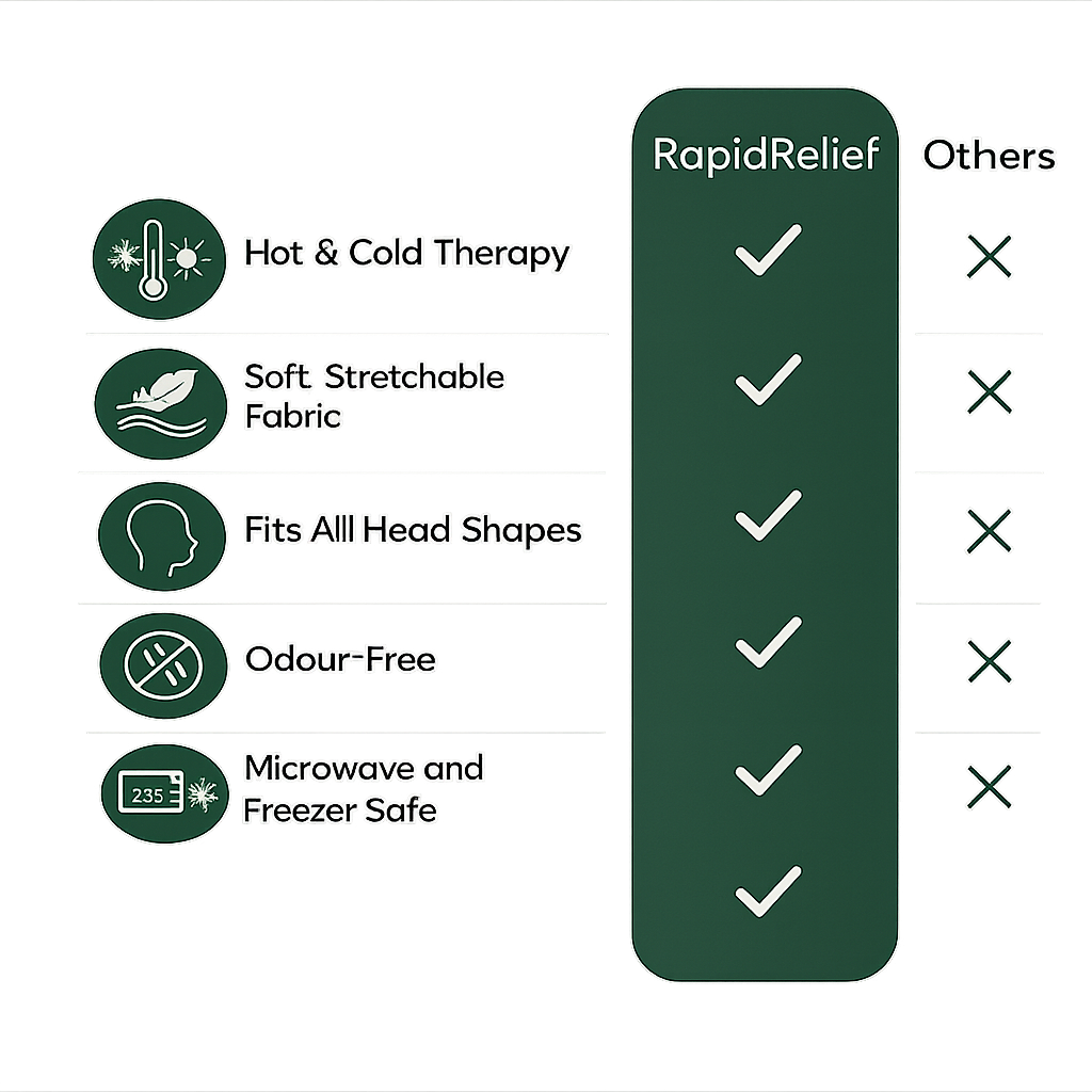 Experience soothing, all-around comfort with the RapidRelief™- Relief Cap—designed to ease tension, reduce headaches, and help you relax in minutes.